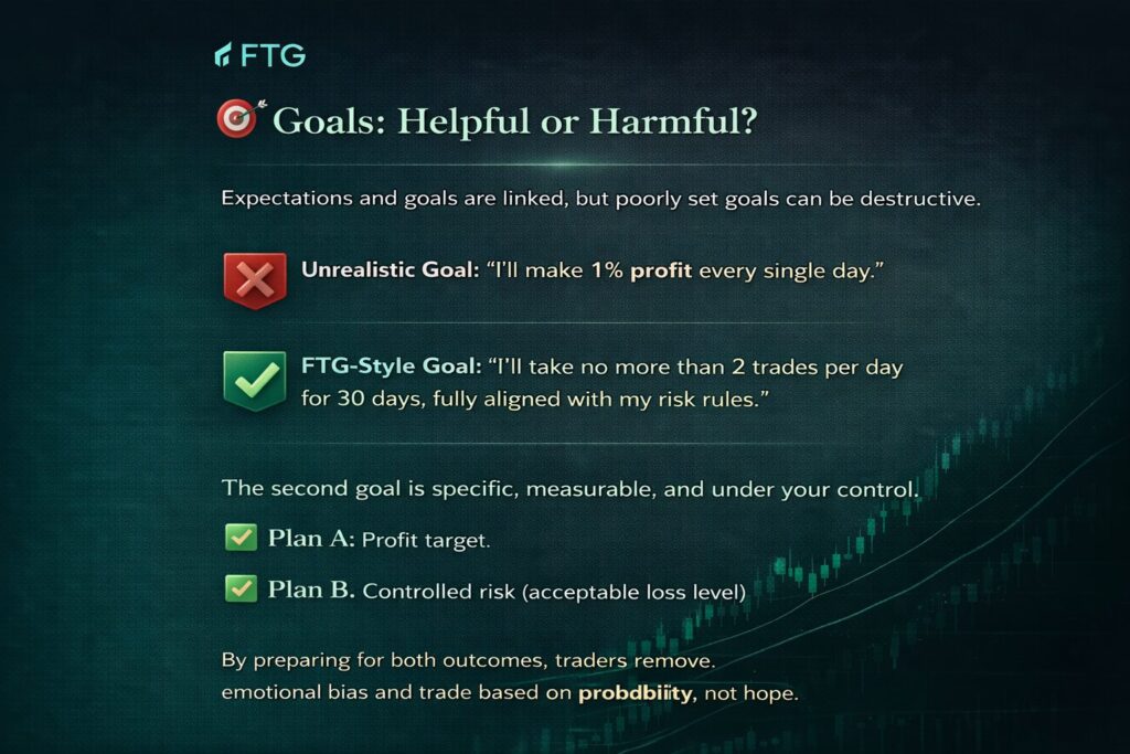 In this article, we’ll explore how expectations shape behavior, how they can help or harm, and how FTG traders can set smarter, growth-driven goals.