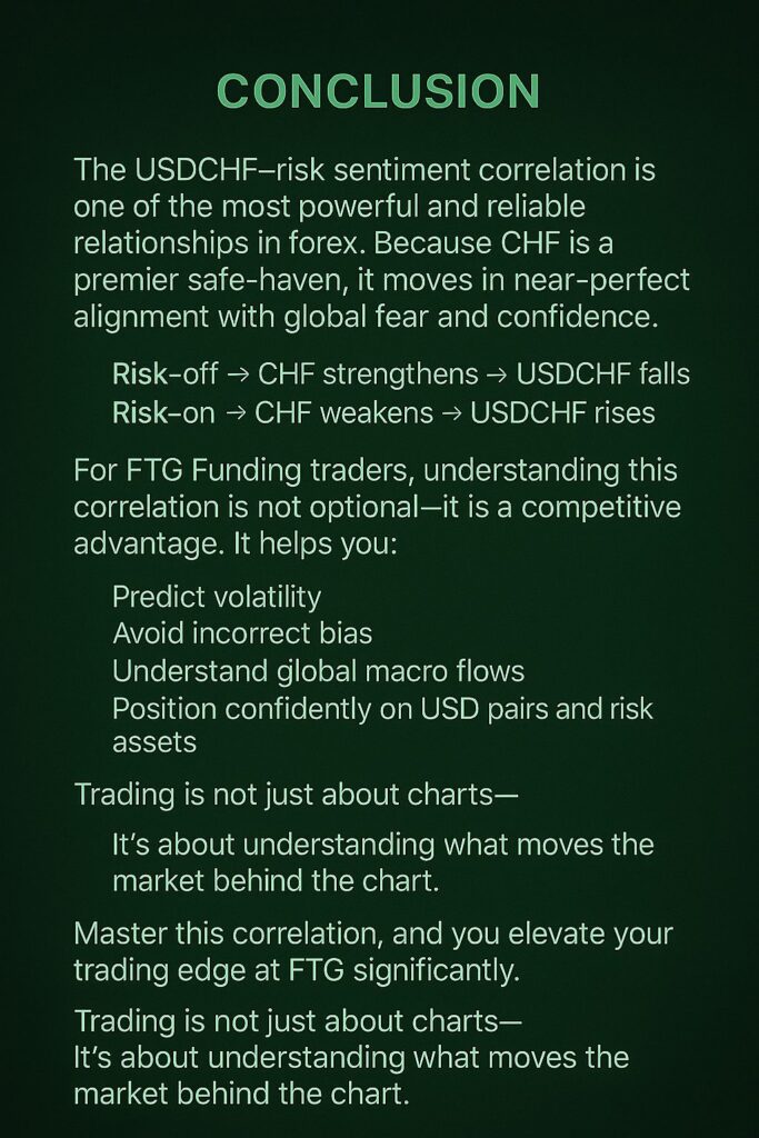 The USDCHF–risk sentiment correlation is one of the most powerful and reliable relationships in forex. Because CHF is a premier safe-haven, it moves in near-perfect alignment with global fear and confidence.