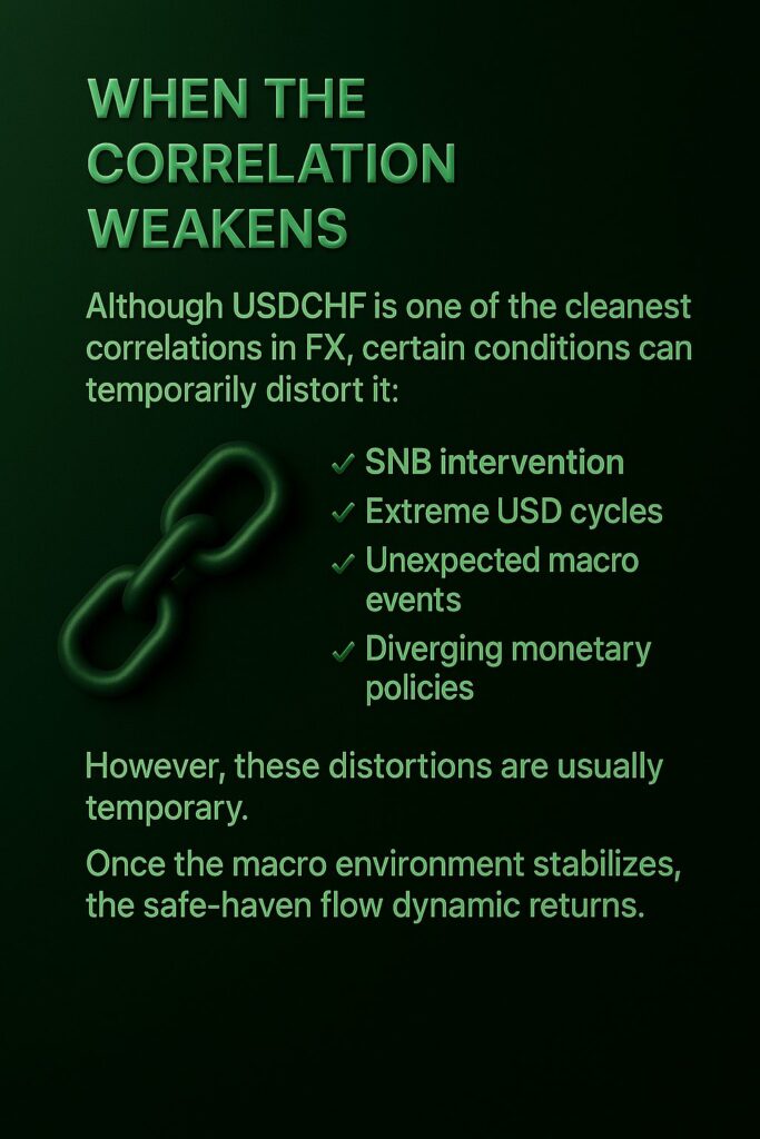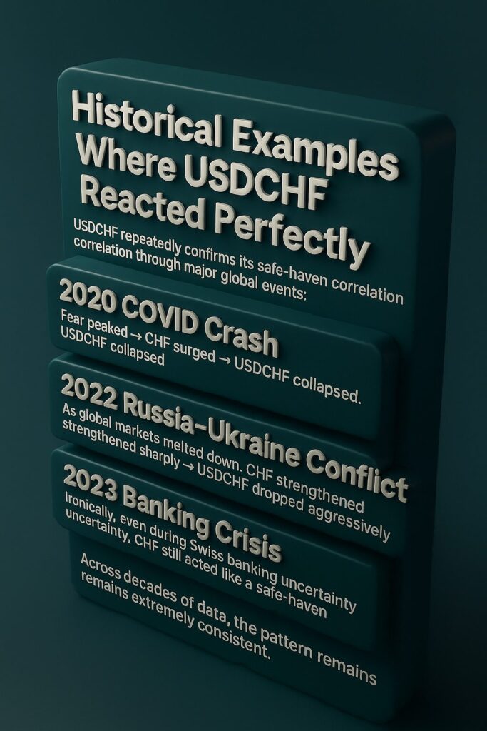 The relationship is so reliable because CHF acts as a safe-haven while USD acts as a global reserve currency. Under normal conditions, USD is already strong—but during intense fear, CHF becomes even stronger.
